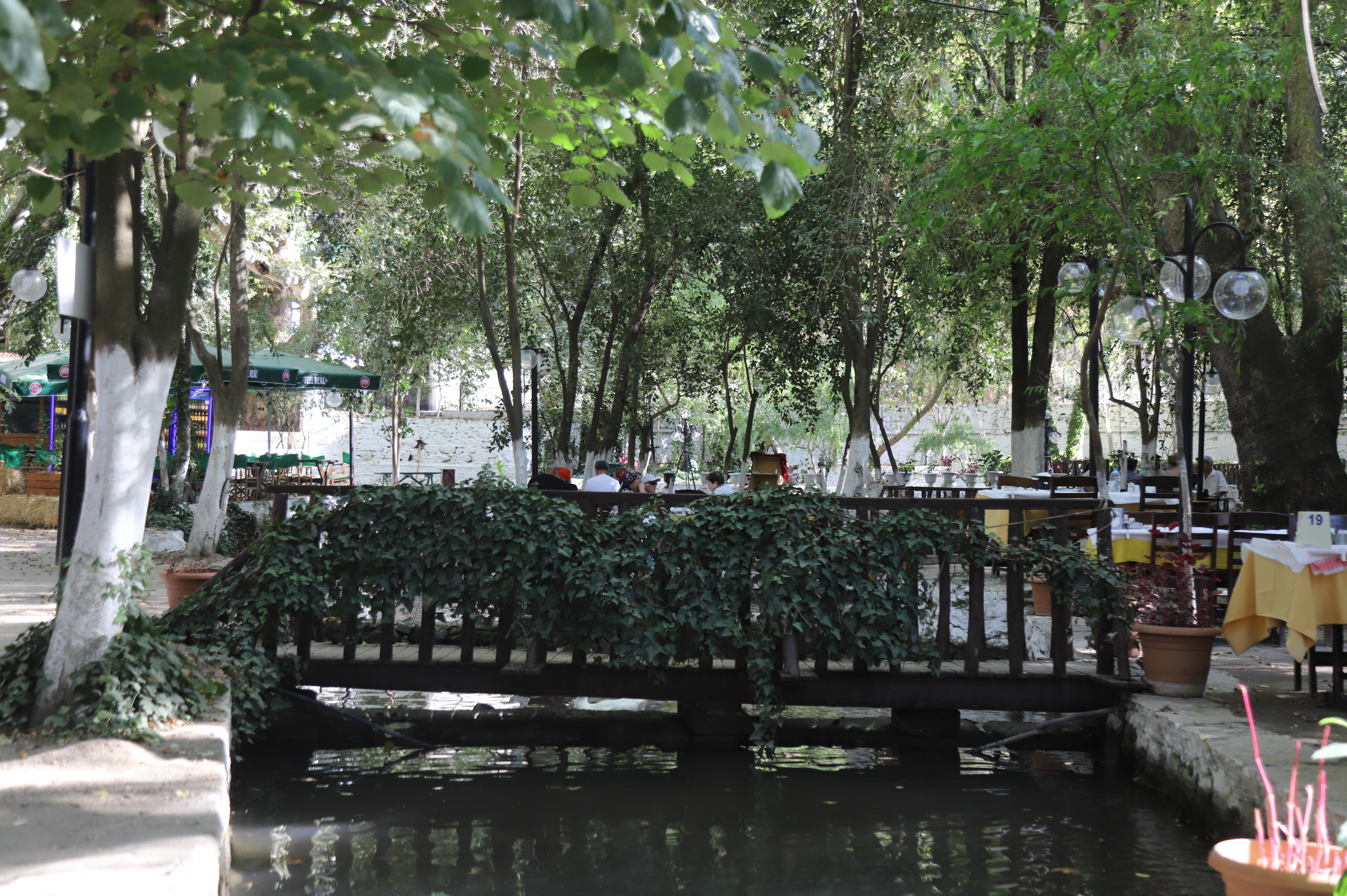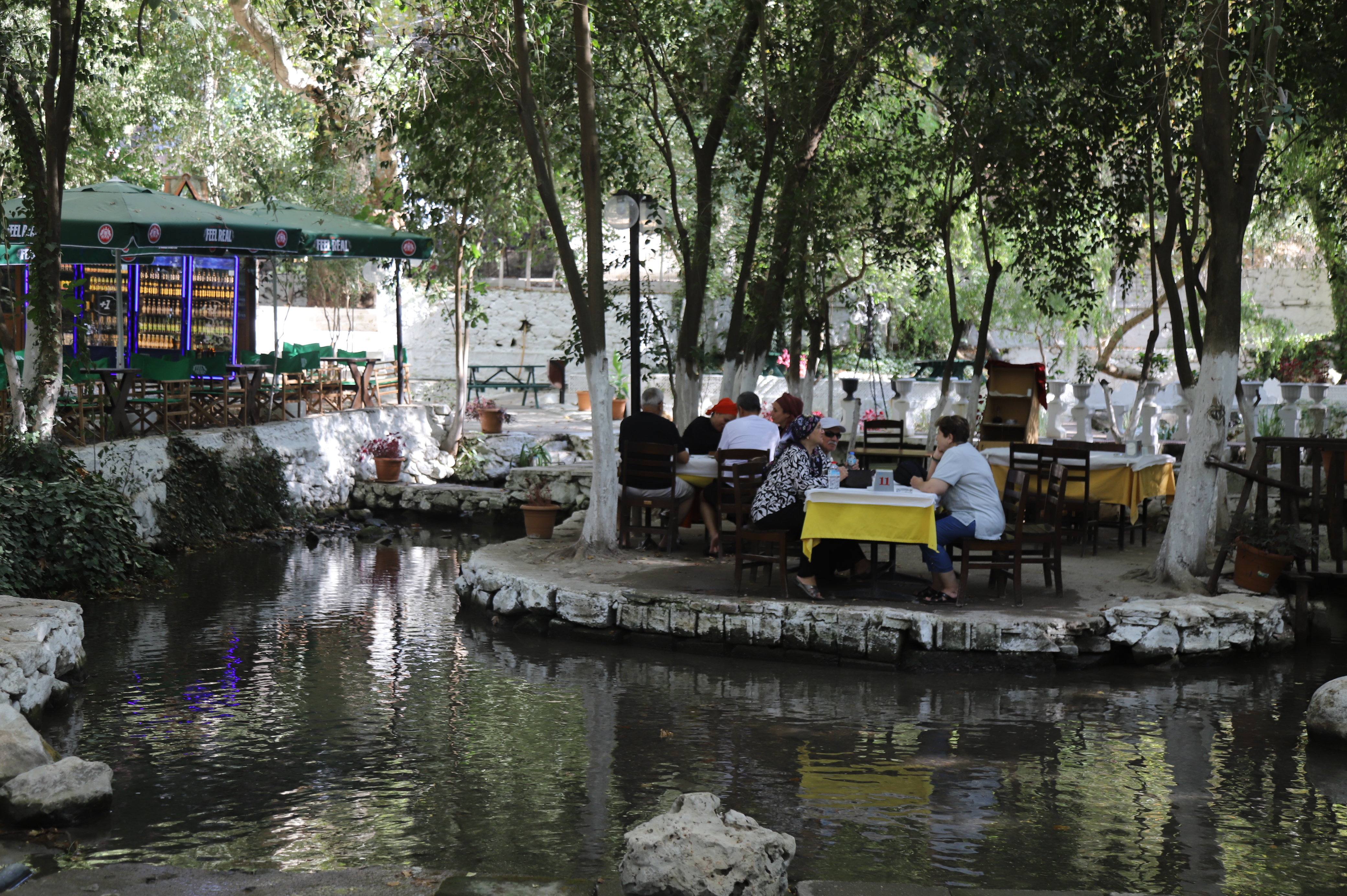 Restoranın düzeni, bu doğal suyun etrafına konumlandırılmıştır. Ahşap platformlar ve köprüler, misafirlere suyun üzerinde ya da kenarında oturma imkânı sunar. Bu sayede ziyaretçiler, akan suyun huzur verici sesi eşliğinde yemeklerini yiyebilir ya da çaylarını yudumlayabilirler. Özellikle yaz aylarında suyun serinliği mekâna eşsiz bir ferahlık katarken, bazı masalar doğrudan suyun içine yerleştirilmiştir. Burada yemek yiyen misafirler, ayaklarını suya sokarak doğanın keyfini çıkarır.