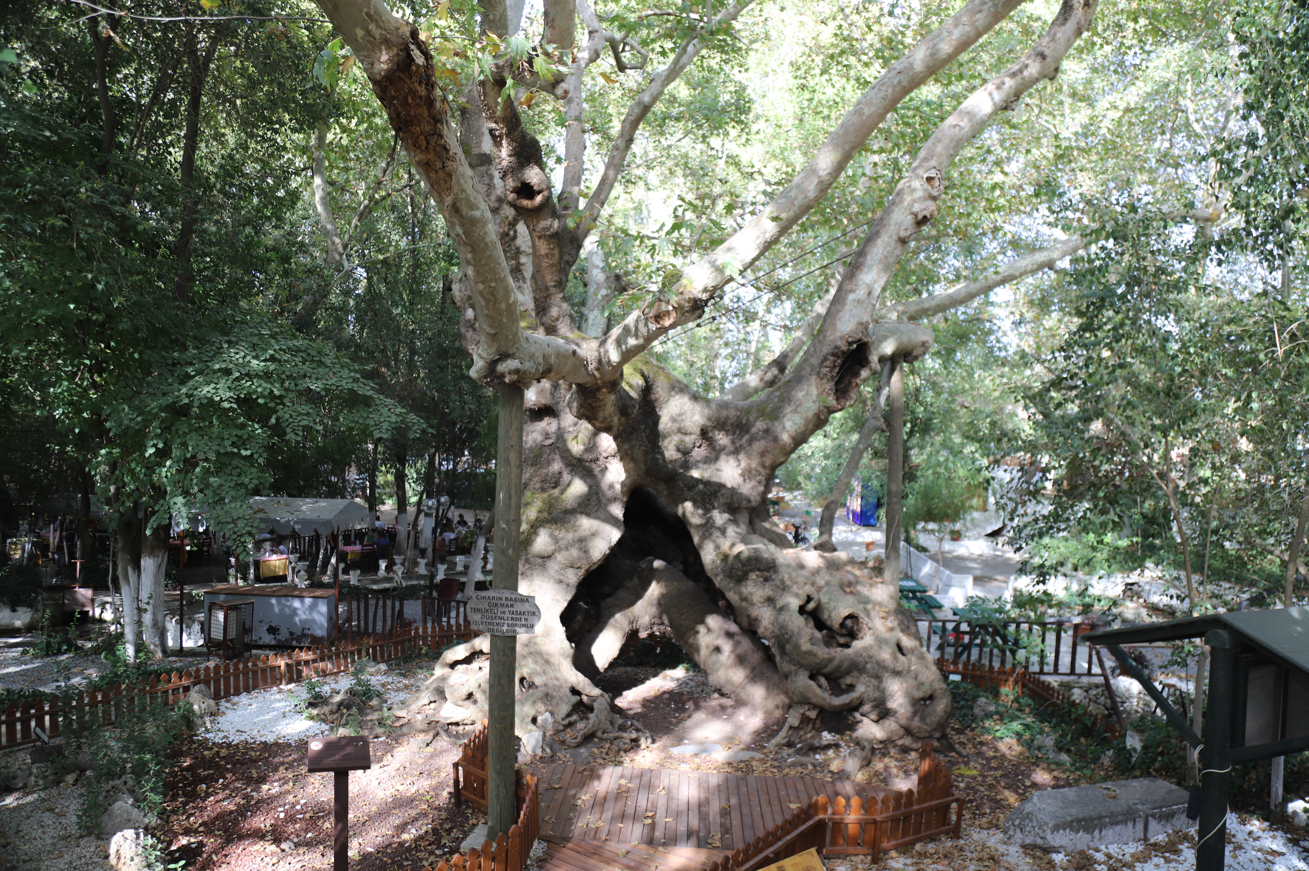 Pınarbaşı Restoran ve 850 yıllık çınar ağacı, Muğla’da doğayla iç içe zaman geçirmek isteyenler için görülmesi gereken en özel yerlerden biridir. Hem tarihi hem de doğal değeriyle bölgenin simgesi haline gelen bu dev ağaç, geçmişten geleceğe uzanan köklü bir yaşamın sembolü olarak Bozüyük Mahallesi’ni ziyaret eden herkesi kendine hayran bırakmaktadır.